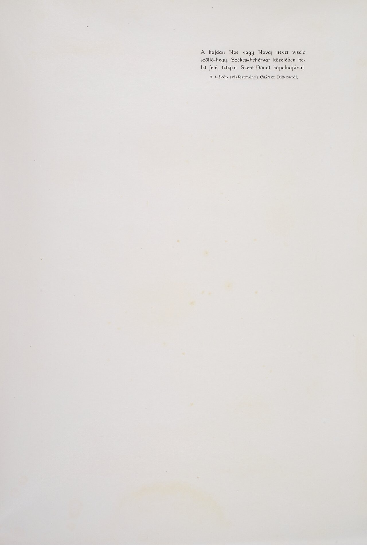 A hajdan Noe vagy Novaj nevet viselő szőllő-hegy, Székes-Fehérvár ké let felé, tetején Szent-Dónát kápolnájával. A tájkép (vízfestmény) CsáNKI Dé